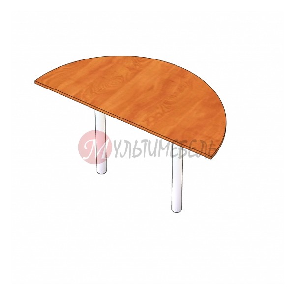 Приставка торцевая в виде полукруга для объединения двух угловых столов в сдвоенное рабочее место. Опирается на 2 металлические ноги.