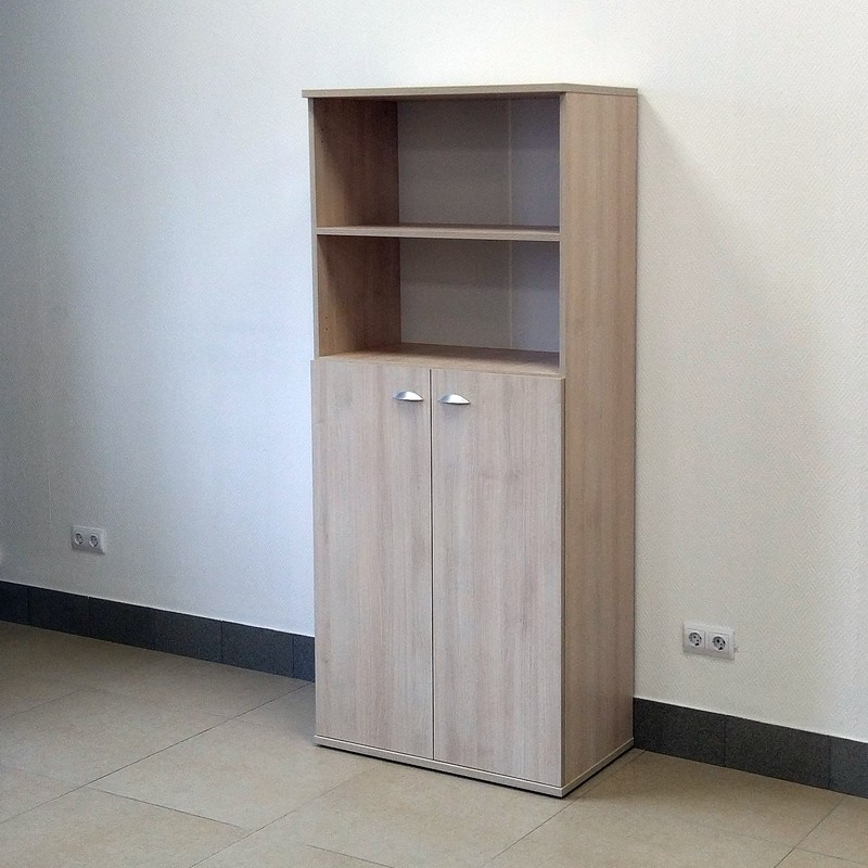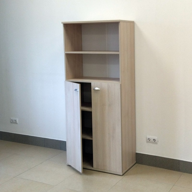 Шкаф для документов офисный с полками: три закрытых и две открытых секции. Стильный, функциональный, из ЛДСП 18 мм. Размер 806×436×1858 мм.