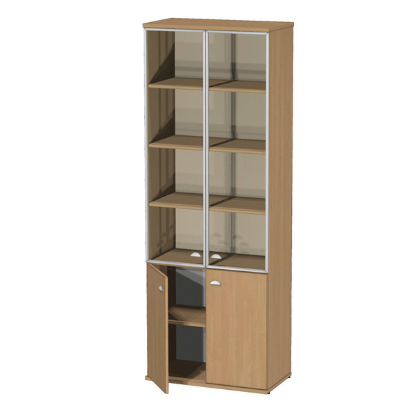 Высокий шкаф для документов с глухими и стеклянными дверьми в алюминиевой рамке. Идеален для офиса. Стиль, вместительность и удобство.